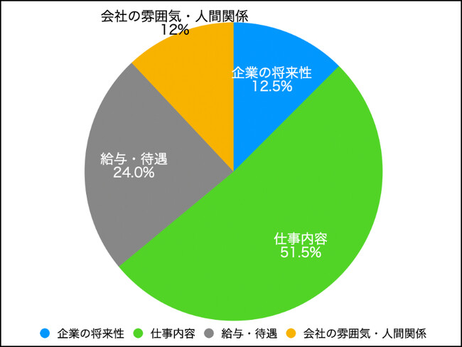 まだ社会人として働く前に会社選びで最も重要だと考えていたのは「仕事内容=51%」が最多となりました。