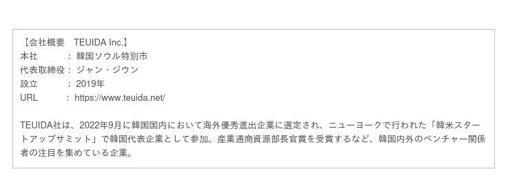 TEUIDA社の課題であるマーケティング、ローカライズ問題を当社が解決できそうであり、当社としても、韓国語学習者に不足しがちである「会話練習」、「正しい発音練習」といった問題を解決する方法としてTEUIDA(トゥイダ)が活用できると判断しました。