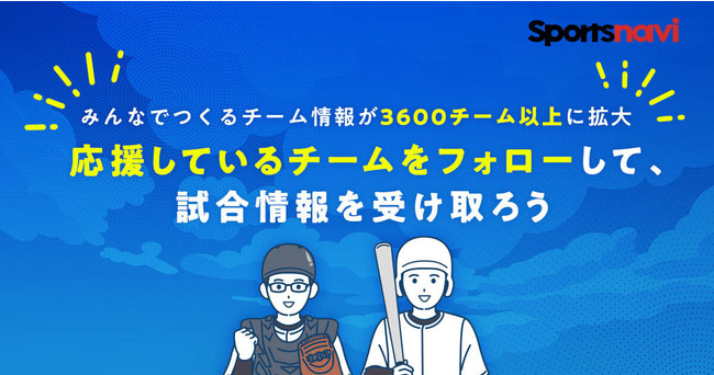 ※1:スポーツナビ、アマチュアスポーツの発展を目指し、ユーザーがチームの情報や応援メッセージを記入できる「みんなでつくるチーム情報」サービスを提供開始(2022年3月17日)