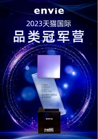 『envie』、中国最大手ECプラットフォーム「Tmall国際」主催のイベントにおいて「FY2023 Category Captain of the Year 2023財年天猫国際品類冠軍営」賞を受賞