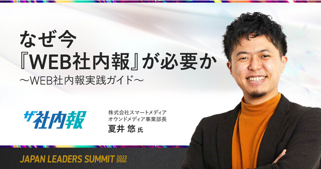 デジタルコミュニケーション事業を展開する株式会社スマートメディア(本社: 東京都港区、代表取締役社長:成井 五久実)は、株式会社スマートキャンプ(本社:東京都港区、代表:林 詩音、以下「スマートキャンプ」)が主催し、2023年4月18日(火)〜20日(木)に初開催する経営者、リーダー向けイベント「JAPAN LEADERS SUMMIT 2023 春」にて、無料オンラインセミナー「なぜ今『WEB社内報』が必要か〜WEB社内報実践ガイド〜」に登壇します。過去750サイト以上のメディアを構築してきたスマートメディアが、WEB社内報の運用方法やコンテンツ制作ノウハウを徹底解説いたします。