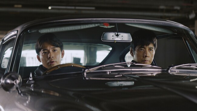 8月下旬、都内の立体駐車場で行われた西島さんと仲野さんのシーン。第1弾ではヘリコプターやバイクに乗ったり、白戸家のリビングにこっそり潜入したり、動きの激しいシーンに臨んだ二人ですが、今回は一転して、駐車場に停めた車内の会話だけで物語が進むワンシチュエーションで撮影しました。息の合った演技でOKテイクを連発していた西島さんと仲野さん。休憩中は二人が乗り込んだ車の話題で盛り上がると、クラシカルな内装をチェックしたり、全体のフォルムやパーツを興味津々眺めたりして、ビンテージカートークに花を咲かせていました。