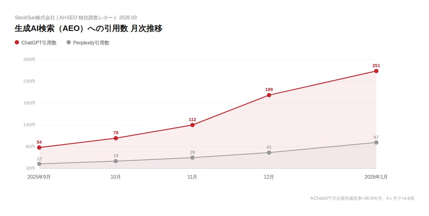 【調査結果4.】生成AI検索(AEO)への波及:月次引用数推移
