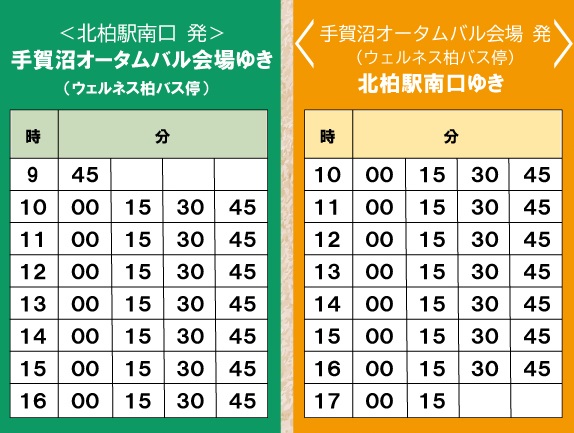 ・JR北柏駅南口から無料のシャトルバスを運行します。