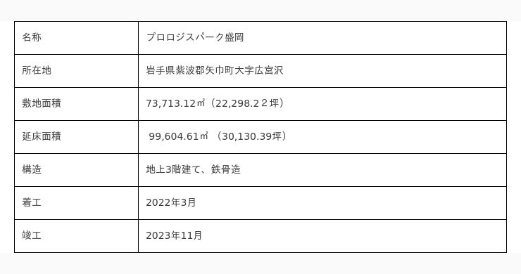 物流不動産の所有・運営・開発のリーディング・グローバル企業であるプロロジス(日本本社:東京都千代田区丸の内、代表取締役会長 兼CEO:山田 御酒)は、本日、岩手県紫波郡矢巾町において、マルチテナント型物流施設「プロロジスパーク盛岡」の竣工式を挙行したことを発表しました。