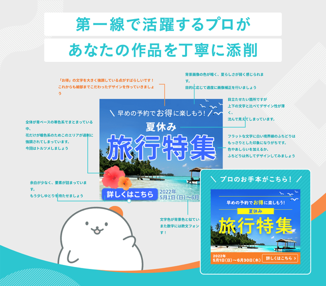 rimomoではプロの添削でデザインスキルを的確にレベルアップさせることができます。