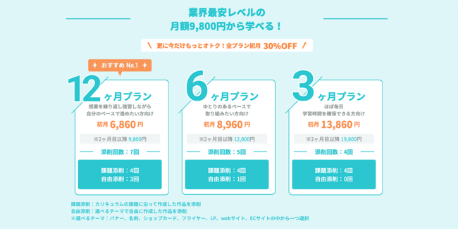 3ヶ月プラン :初月13,860円 (通常:月額19,800円)