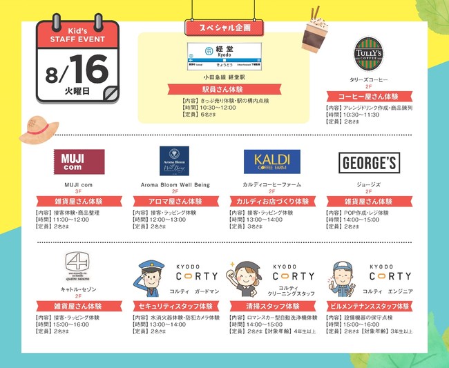 株式会社小田急SCディベロップメント(本社:東京都新宿区 代表取締役:細谷 和一郎)は、夏休み中の小学生を対象に、ショッピングセンターや駅員の仕事体験ができる「おしごと体験イベント」を、小田急沿線の6つのショッピングセンター(経堂コルティ/新百合ヶ丘エルミロード/相模大野ステーションスクエア/ビナウォーク/本厚木ミロード/ODAKYU 湘南 GATE)ならびに対象駅にて、施設合同の特別企画として開催します。