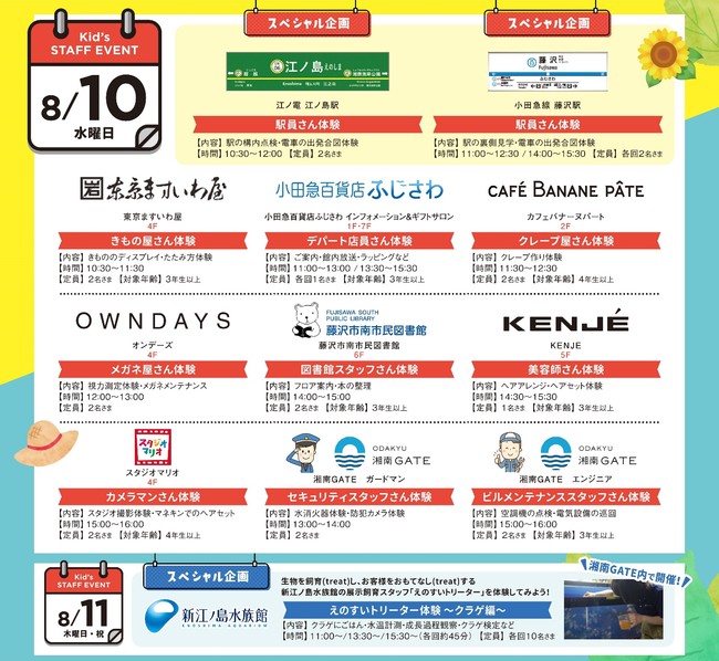 <小田急のショッピングセンター6施設&対象駅合同の夏休み特別企画>小学生限定!「おしごと体験イベント」開催 7月1日(金)よりWEB応募受付開始!