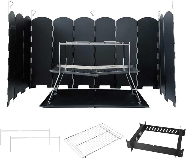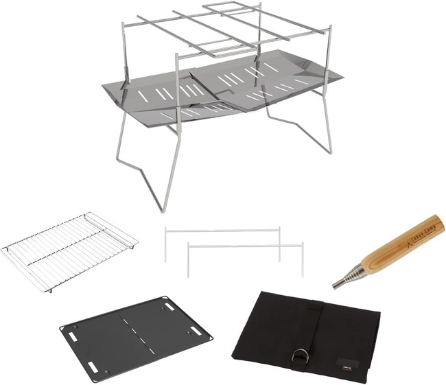 ?セット内容 : 焚き火台/オプションパーツ/焼き網/焚火プレート/専用スタンド/ウインドスクリーン