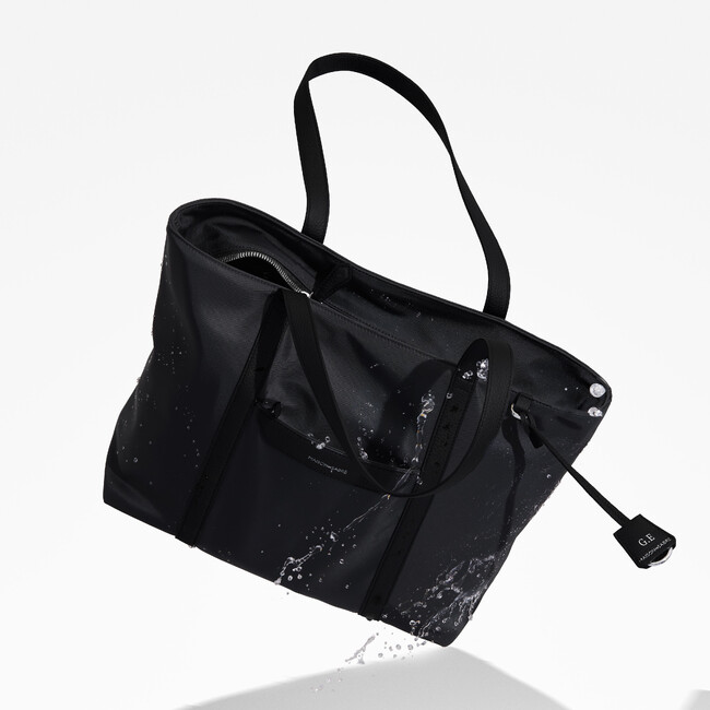 独自開発したResilon(TM)ナイロンは、不要になった漁網の糸を再利用して作られた100%リサイクル素材。有害な過フッ素化合物を含まない革命的なファイバー技術を用いたナイロン生地は、軽くて上質でとってもサステナブル。外側に施された疎水性シェルが水を弾き、さっと乾くので急な雨でも中身が濡れる心配がありません。
