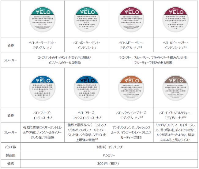 東京への販売地域拡大に伴って展開する、新パッケージデザインのオーラルたばこ「VELO」全8銘柄をトライアルいただけます。