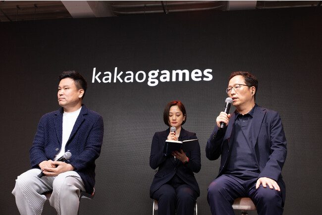 ▲開発社LIONHEART STUDIOのキム・ジェヨン代表、パブリッシャーのカカオゲームズのチョ・ケヒョン代表のトークセッション