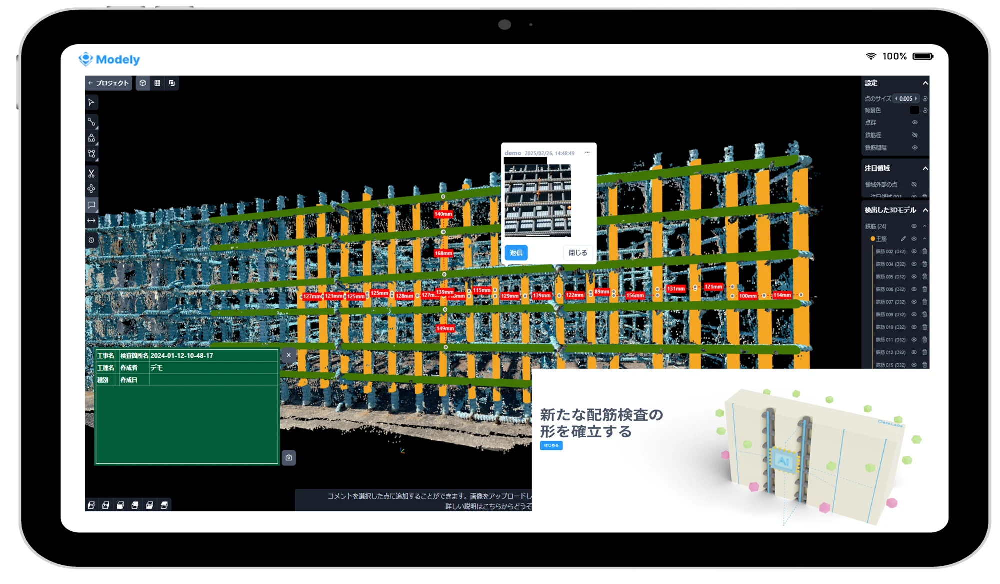 DataLabs株式会社は、「3次元データで建設業を変革する」をミッションに掲げ、あらゆる建設業務を効率化するクラウドシステムの提供を行うスタートアップ企業です。3次元配筋検査システム「Modely」や「3D InfraLoop」(3Dインフラ補修工検査システム「Hatsuly」、3Dインフラ点検システム「Markly」)を開発・提供。