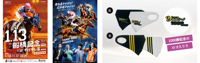 さらに、夜競倶楽部オンライン会員の方には「船橋ケイバからのお年玉プレゼント」として、抽選で合計60名様に「船橋ジョッキーのサイン入りポスター」または「矢野義幸調教師 1,000勝記念マスク」をプレゼント。※「夜競倶楽部オンラインのマイページ」https://yakei.heartbeat-nighter.online/contents.php?c=user_loginにて公開中の“ある方法”で引用ツイートもしていただくとTwitterキャンペーンと同時にエントリーも完了いたします。