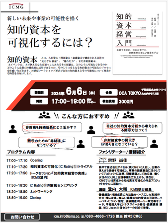 本イベントでは、木で例えるならば根っこにあたるその価値は、どのように可視化できるのか、どのように企業の持続成長に活用できるのか、その入り口をとなる知的資本の可視化のプロセスを、IC Rating(R)を通して体感いただきます。