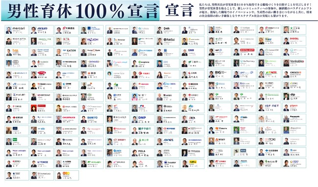 当社が 2019 年 3 月より募集を開始した企業・組織の代表者による宣言で、「現在、自社内で男性 の育児休業取得率 100%の実現を目指して取り組んでいる」組織および「今後、取得率をあげて、 いずれは 100%を目指したい」組織により構成されるものです。企業規模や現在の取得状況などは 問わず、将来的に男性であっても育児休業が取得しやすい環境の実現に経営者としてコミットする ことを明示するためのもので、2023 年 3 月 29 日の時点で 159 社の宣言が集まっています。
