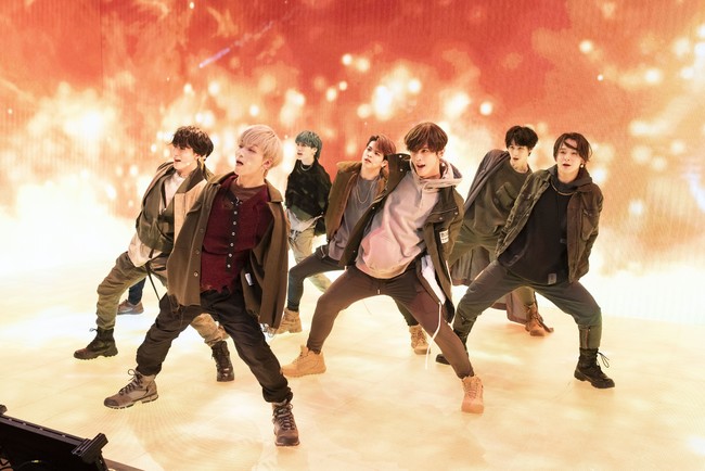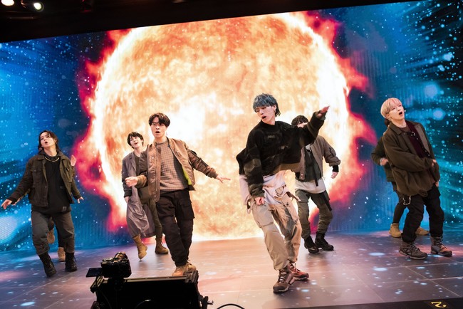 収録は、デビュー曲「IT’S A BOP」からスタート。「よろしくお願いします!」とスタッフに挨拶をすると全員で円陣を組み「成功させようぜ!」と気合を入れる。衣装はMV冒頭と同じミリタリー。音が出る前に古瀬と冬馬は靴のひもを結び直し、準備を整えた。