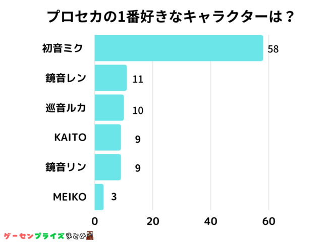 「プロセカで一番好きなキャラクター」についてアンケート調査した結果、1位は『初音ミク』でした。