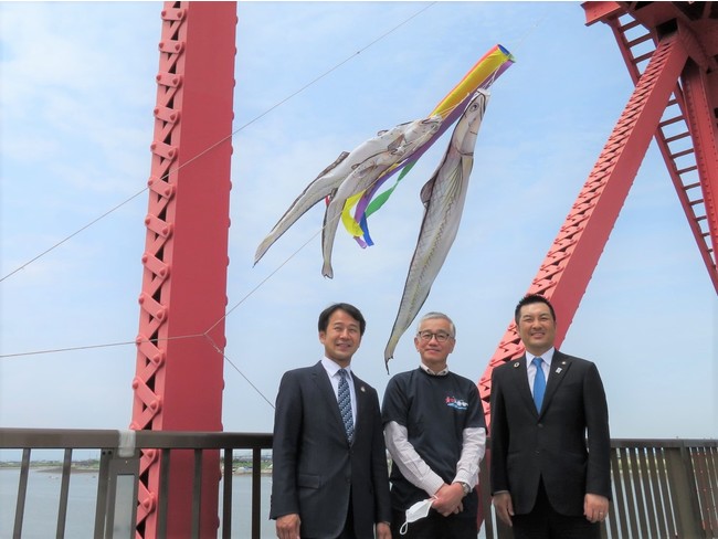 5月11日、「えつのぼり」の掲揚式が執り行われました。えつ銀色祭りの期間中、筑後川にかかる国重要文化財「筑後川昇開橋」(福岡県大川市・佐賀市)にて掲げられています。