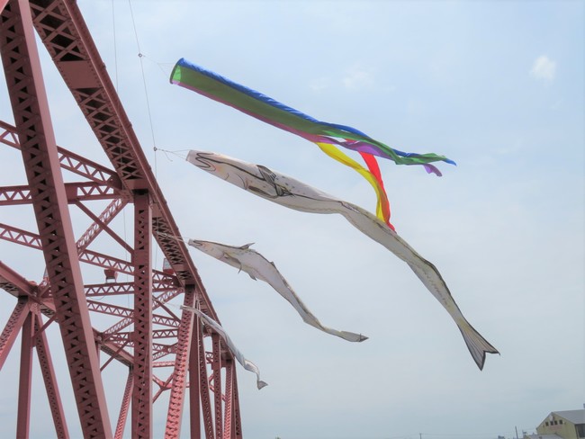 【今年も「えつのぼり」登場!〜筑後川昇開橋をバックにえつのぼりが泳ぎます〜】