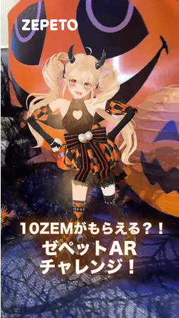 参加条件: ハロウィン雰囲気が感じられる物や場所の前でZEPETOのARカメラ機能を使いアバターを撮影+自分のTikTokに指定ハッシュタグ#ハロウィン #ゼペットARチャレンジをつけて投稿