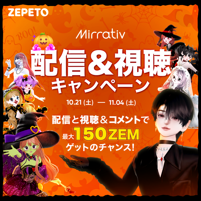 参加条件:MirrativのユーザーがZEPETOを使い、配信と視聴+コメント
