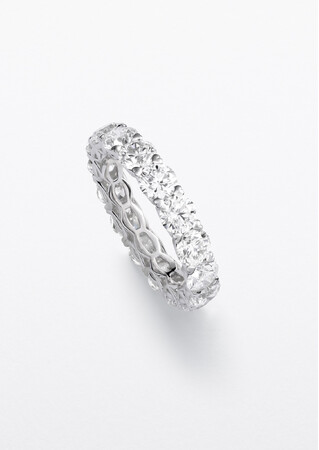 革新的な独自のセッティング技術によって、“ハート”をフィーチャーした最新作のエタニティリングは、ロマンティックなデザインとフェザーのように軽やかなセッティングによって、あらゆるファセットから光を取り込み、さらなる輝きを放ちます。