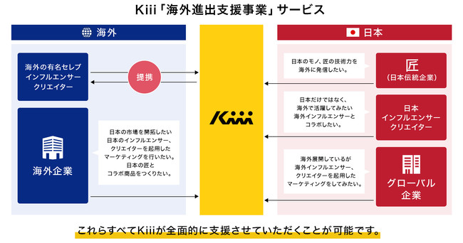 株式会社Kiii(本社:東京都渋谷区、代表取締役:今川 龍一、専務取締役:藤倉晴樹、以下Kiii)は、2021年9月より海外進出支援サービスの検討を重ね、日本のみならず海外市場も視野にいれたグローバルサービス提供の実現に向け、計画を進めてまいりました。この度、海外進出支援サービスを提供する準備が整いましたことを発表いたします。