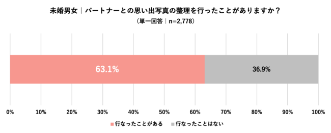 未婚男女の63.1%が、パートナーとの思い出写真の整理を行ったことがあると回答