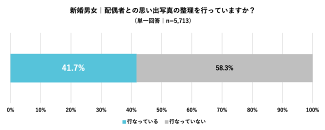 結婚1年目から3年目の新婚男女に、配偶者との思い出写真の整理を行っているかを聞いたところ、41.7%が「行っている」と回答しました。