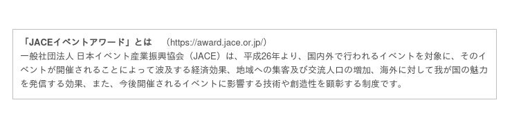 総合制作事業会社の株式会社博報堂プロダクツ(本社:東京都江東区、代表取締役社長 岸 直彦)が制作したイベント業務が、一般社団法人 日本イベント産業振興協会(JACE)が主催するアワード「第8回JACEイベントアワード」にて、「イベントプロフェッショナル賞」「優秀賞」「特別賞」を受賞いたしました。