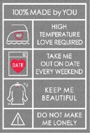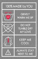 コレクションのなかでも注目は、カップルでお揃いで着用したい"トリセツ"パジャマシリーズ。男女共にフロントには品質絵表示に見立てたそれぞれに向けた”トリセツ”風の愛のメッセージを掲げたユーモアたっぷりのプリントを施しています。