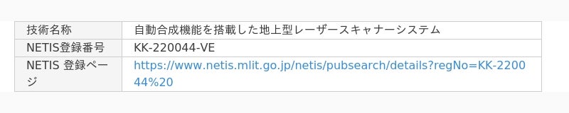 3D測量業務を大幅削減「自動合成機能を搭載した地上型レーザースキャナーシステム」がNETISの評価ランク「VE」へ昇格