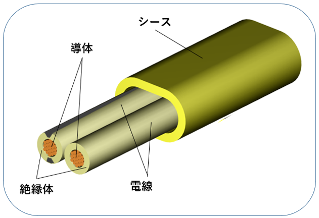 衝撃や振動による断線を防ぐ必要があることから、ケーブル内部の電線はPVC(ポリ塩化ビニル)を主原料とするチューブ(以下、PVCチューブ)などで保護されますが、当社は、PVCチューブより軽量・細径化が図れるシース(ケーブル外皮)で電線の外周を覆う構造を従来から採用し、PVCチューブによる保護と同等の高い耐外傷性を実現してきました。