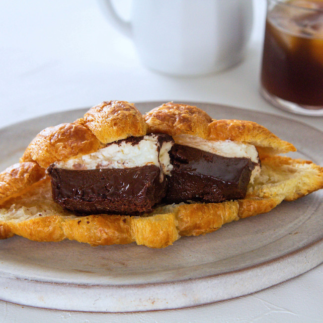 濃厚なガトーショコラにホイップクリームでミルクリッチな味わいが加わり、ここにクロワッサンの食感とリッチな香りが加わる破壊力抜群の味わいをおうちにてお楽しみください。