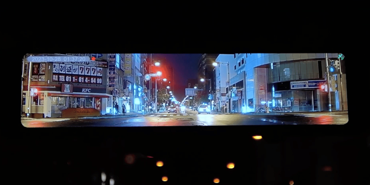 リヤカメラ:水平134° 広角レンズ(SONY IMX307 + 後方広範囲を記録するための画角)