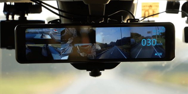 AKY-NV-360は走行中の車内外を360°撮影することができるので、通常のドライブレコーダーでは撮りきれない「横方向からの突然の飛び出し」や「後方からの無理な追い抜き」なども、ほぼ死角なしで逃さず記録することができます。