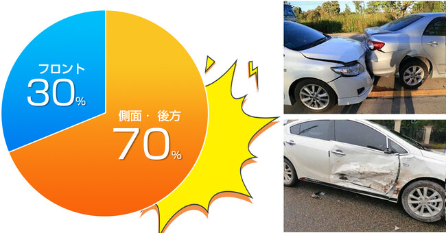 交通トラブルの約七割の確率が、自動車の後方・側面で起きています前方で起きる事故に比べ、後方・側面で起こる事故では「被害者」となる確率も高くなります。