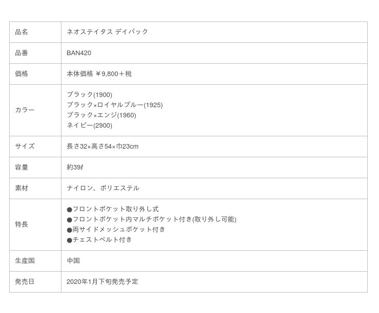 《ZETT》軽量かつスタイリッシュ!大学生や社会人も使用可能。【ネオステイタス デイパック BAN420】登場!