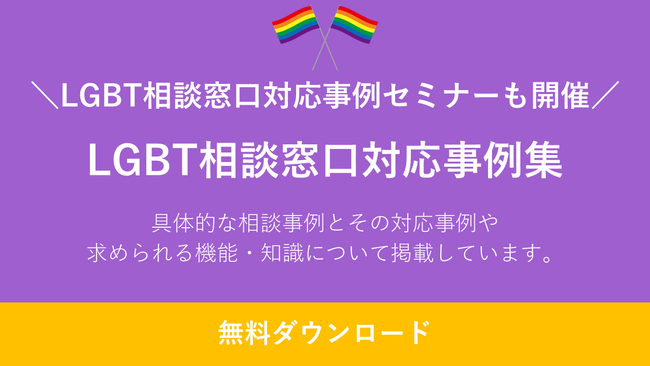 【資料提供】LGBTに関する相談窓口の対応事例として『LGBT相談窓口対応事例集』を資料として提供開始。無料オンラインセミナーも同時開催。