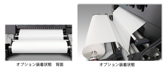 「ミニジャンボロールユニット」※5は、低ランニングコストを実現した約2,500m巻の当社純正転写紙「Mimaki Vision™ Jet-X Mini-162」が装着可能な繰り出し装置です。