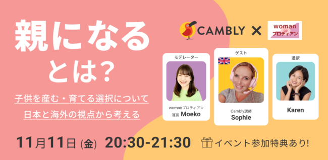 参加無料!11月11日 オンライン英会話 CAMBLY X womanプロティアン コラボイベント開催!