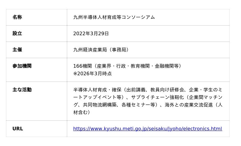 Tech Japan株式会社(本社:東京都、代表取締役:西山 直隆)は、このたび九州経済産業局が事務局を務める「九州半導体人材育成等コンソーシアム」への参画を決定いたしました。同コンソーシアムは2022年3月の設立以来、産・学・官・金166機関が参加するシリコンアイランド九州復活の要となる広域連携体制です。国内の半導体企業が深刻なエンジニア不足の状況に直面する中、Tech Japanは本参画によりこの課題解決の一端を担ってまいります。