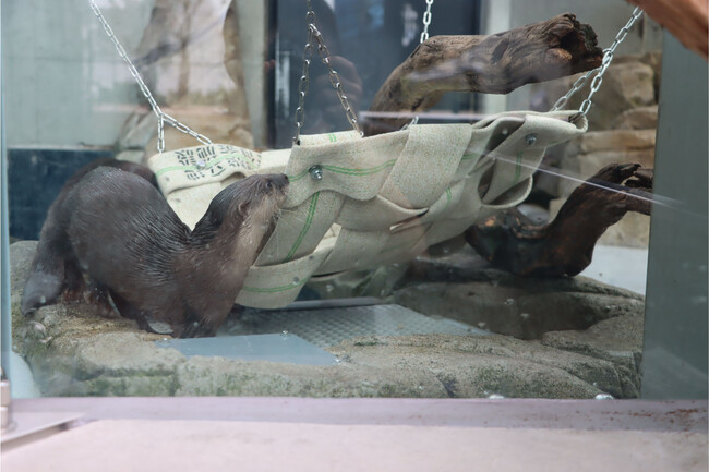 【神戸の劇場型アクアリウムatoa(アトア)】コツメカワウソ「お浜」2歳の誕生日会を開催!プレゼントは飼育員特製「ハンモック」