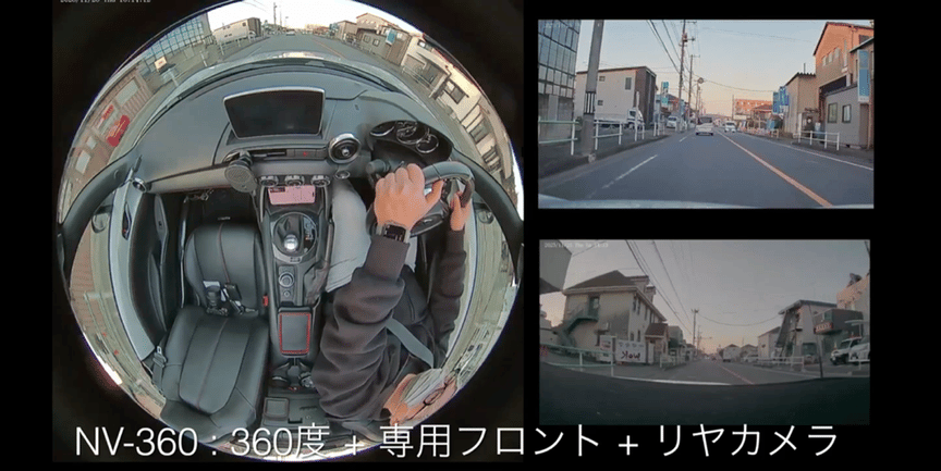 360°全方位カメラ:水平視野角360° + 垂直視野角220° パノラマレンズ(前後・左右・車内の映像を全方位で記録)