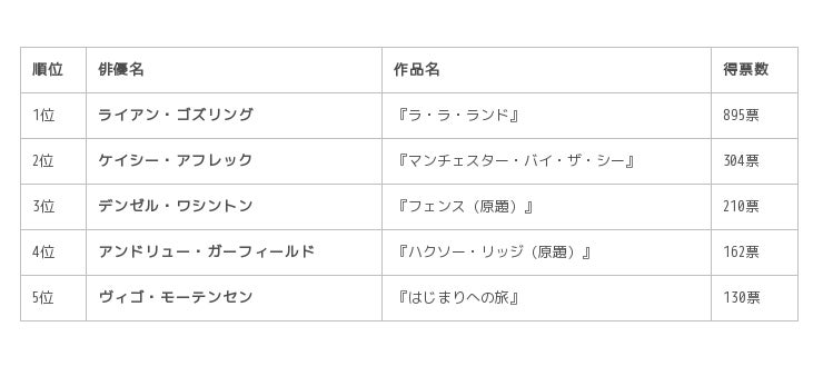 Filmarks調べ「2017年 第89回アカデミー賞受賞大予想」最終結果ランキング発表