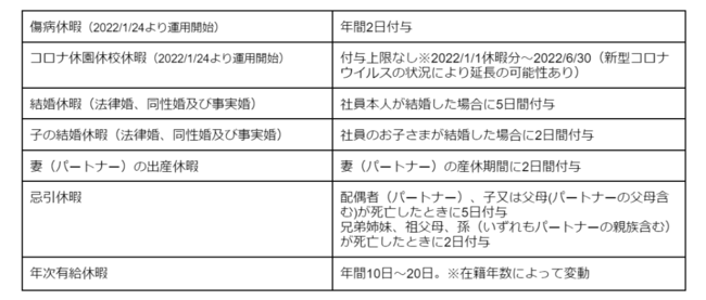 新たな有給休暇制度「子の看護休暇」「介護休暇」を設置