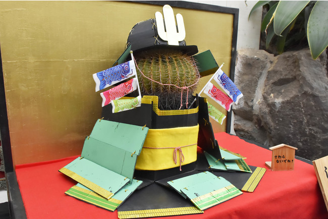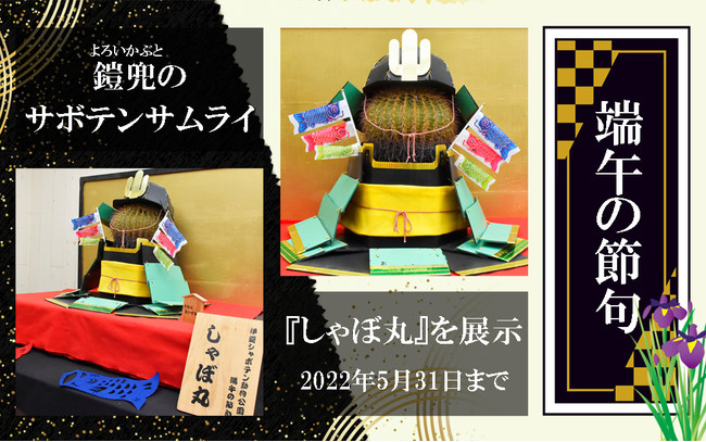 5月を代表する行事である端午の節句に、サボテンの力強い外見と温かい内面をイメージした鎧兜のサボテンサムライ『しゃぼ丸』に扮したサボテン1体を展示いたします。