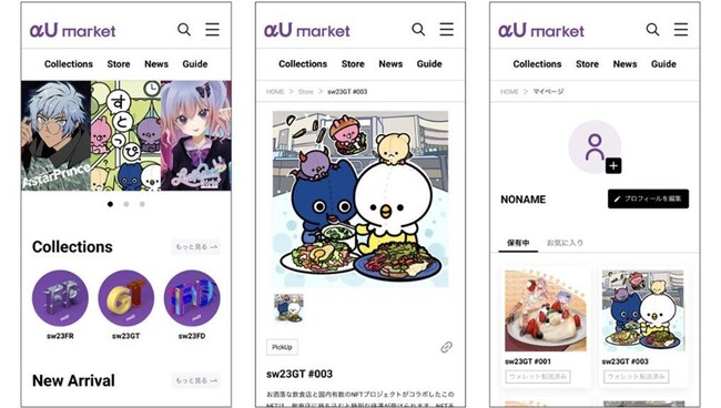 デジタルアート作品(NFT)などが購入できる電子取引市場(マーケットプレイス)です。有名ファッションデザイナーや著名なNFTアーティストによる作品がαU market限定で購入できます。